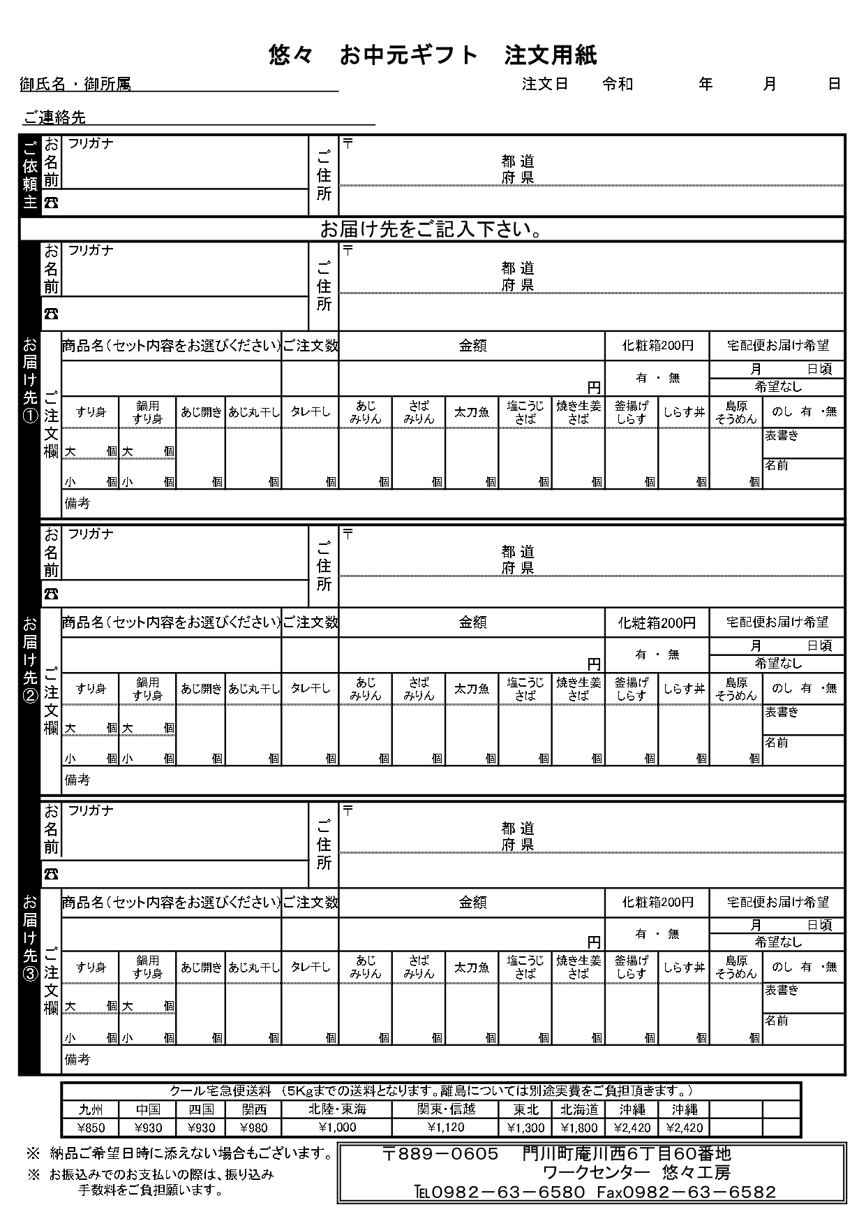 悠々工房では、 注文書ギフトセットを販売しております。
