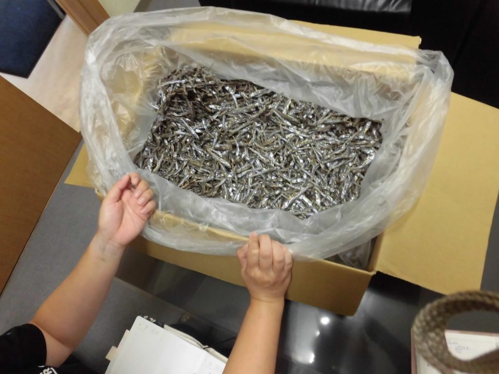 株式会社 英楽様より、お正月料理の田作り用いりこの選別作業をいただきました。