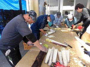 TABERU作業 野菜の計量や袋詰めをがんばっています。
