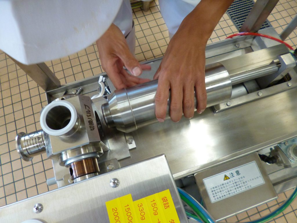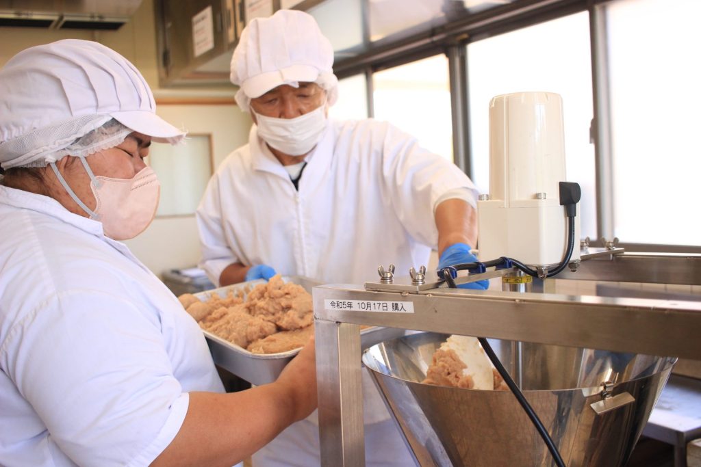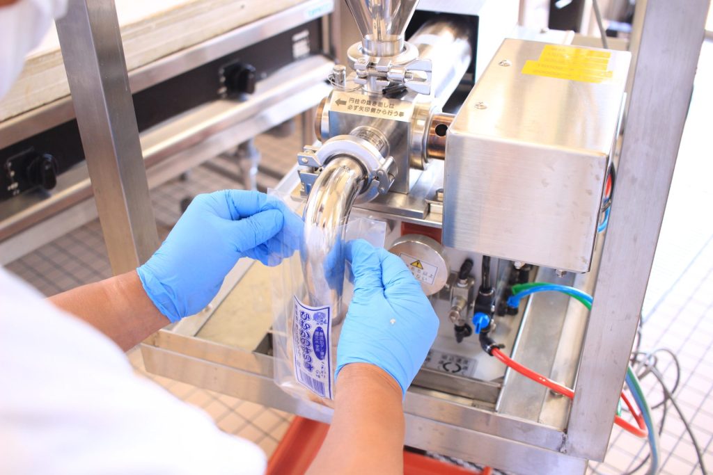 機械の組み立ては部品が多くてたいへんそうですが、ひとたび袋詰めがスタートすると以前に比べて格段に時短!効率アップ! さっそく、ギフトシーズンに向けてすり身の製造量が増えてきますので、充填機があることで1回の製造量が増やせると たいへん喜んでいます。機械の整備をしていただいたことに感謝して大切に使いたいと思います。