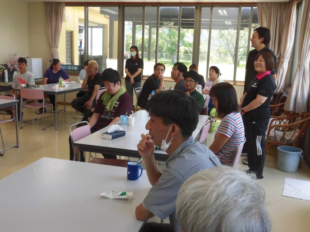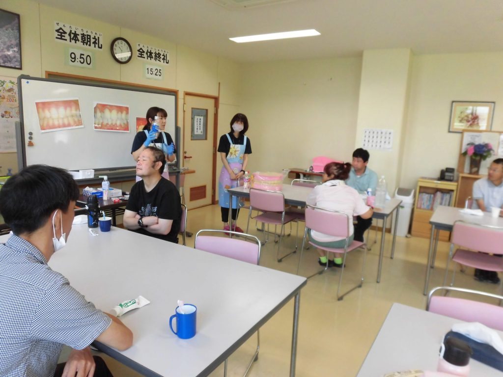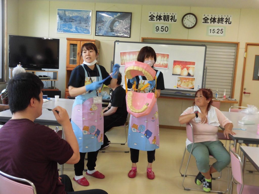大きな写真で歯石や虫歯の画像を示していただき、利用者の皆さんもとても分かりやすく、皆さん熱心に見入っていたようでした。