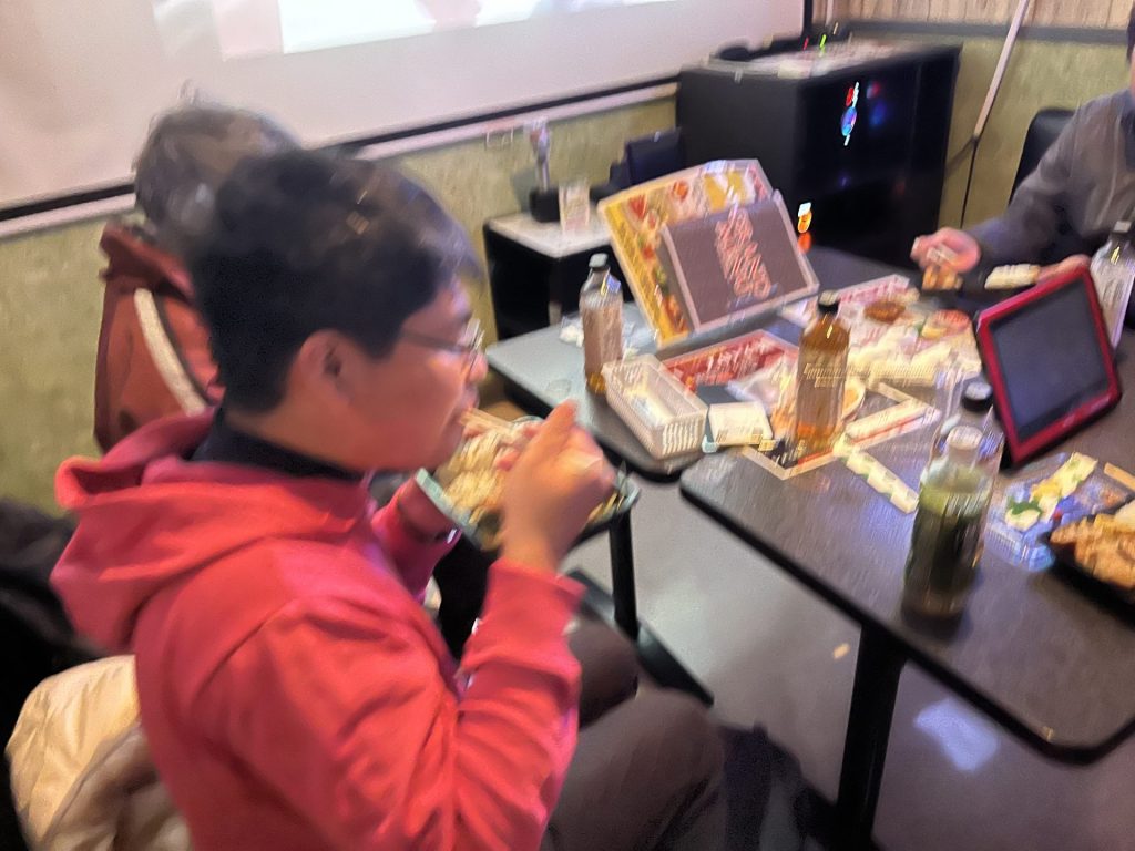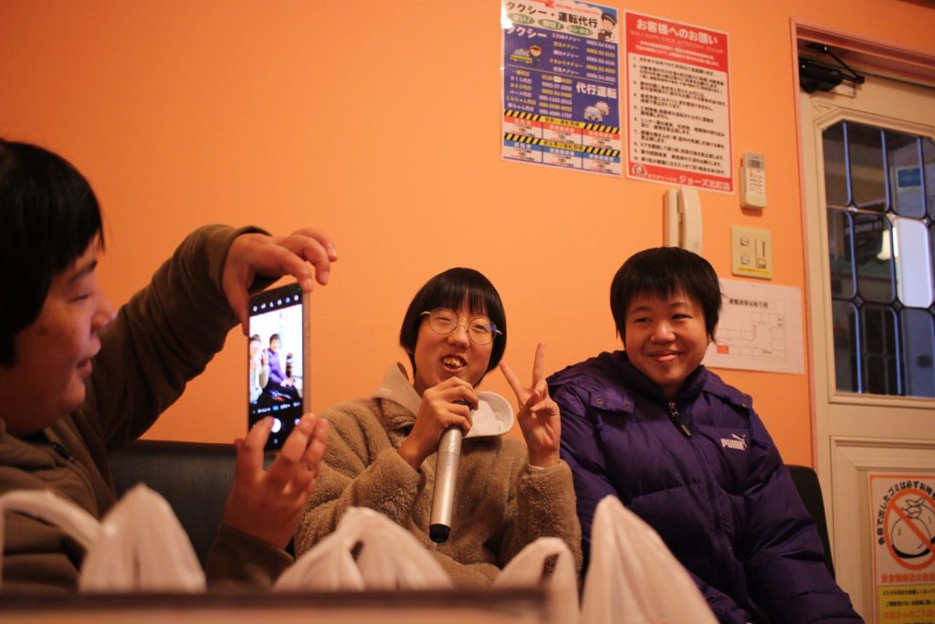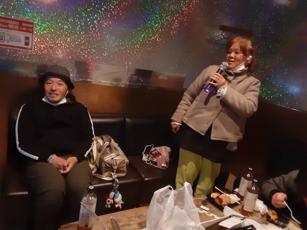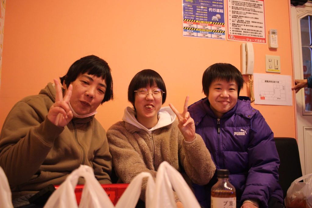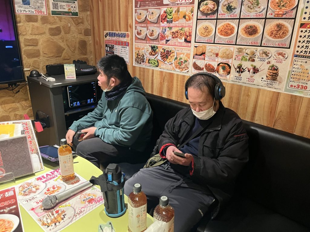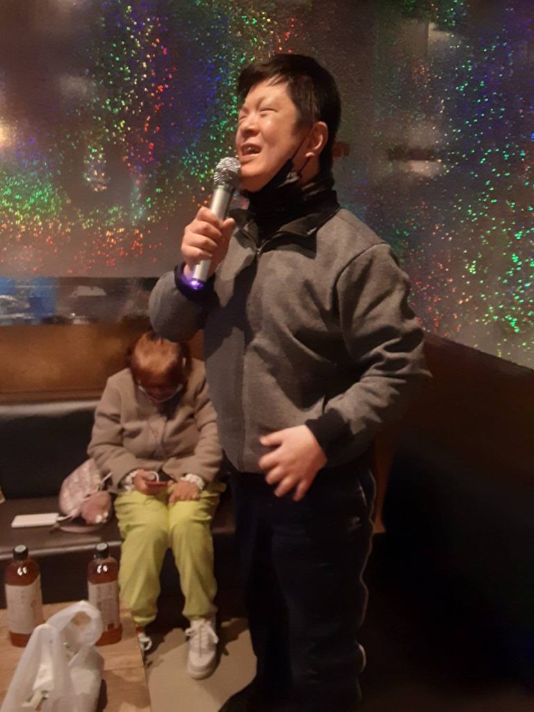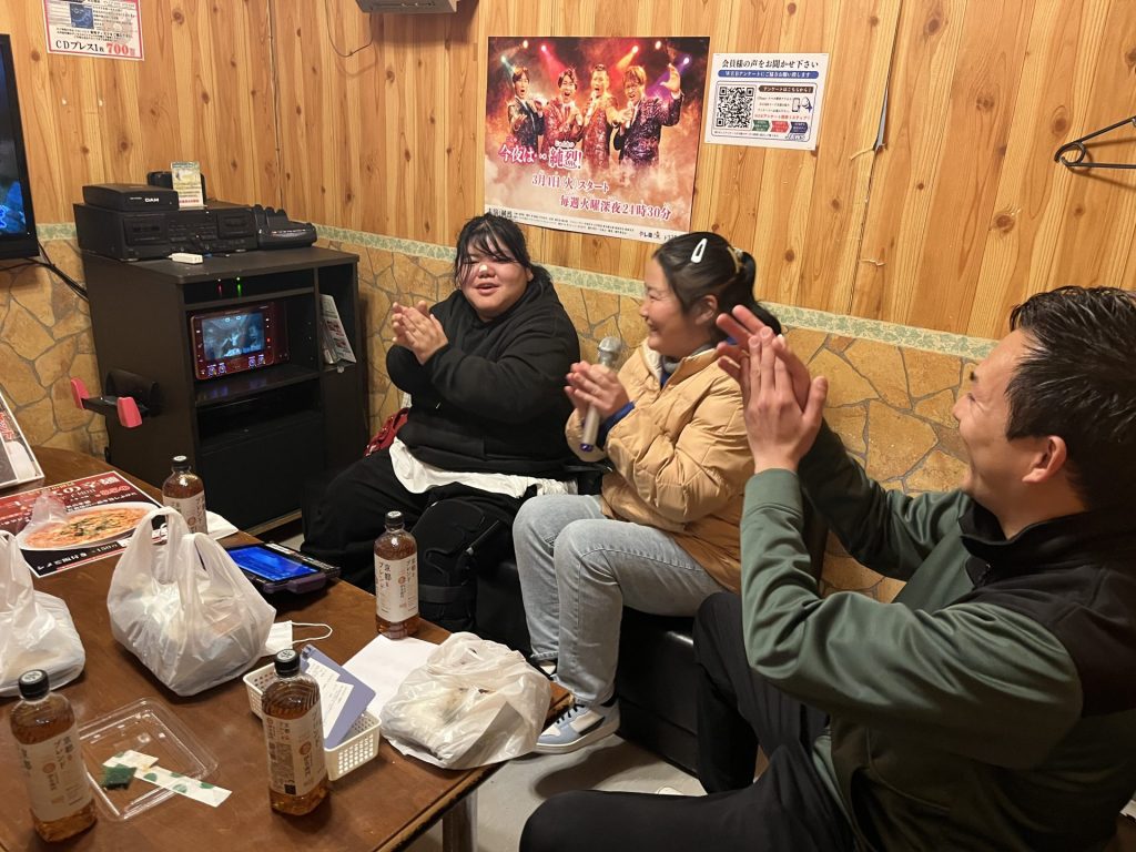 当日は家族会の役員さんお二人が受け付け、お弁当やお茶の準備など、お手伝いにかけつけてくださいました。いつも役員さんには悠々の活動を陰で支えていただき本当にありがとうございます。2月8日(土)日向市のカラオケハウスジョーズにて11時~13時の2時間、6部屋に分かれてのカラオケを楽しんできました。悠々の皆さんはカラオケ好きな方が多く、何曲も歌えた!と、たいへん喜んでいた方もました。日常の作業からはなれて、にぎやかな中に気分もリフレッシュできたことでしょう!カラオケが苦手で歌われなかった方も、ボリュームのある豪華なお弁当に満足との声もありました。皆さんが楽しまれるこのような機会を作っていただき、家族会の皆様には心から感謝いたします。いつも温かく応援していただきありがとうございます。