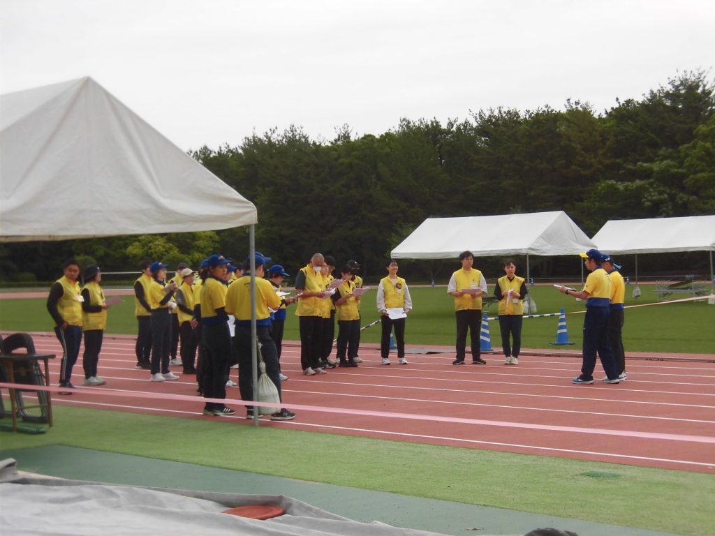 競技をささえる関係者の皆さん…朝早くからの打ち合わせが行われていました。