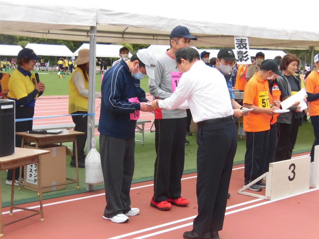 各部門3位までの方には記念のたて、それ以外の方にはハンカチのプレゼントがありました。