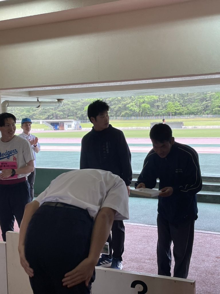 宮崎県障がい者スポーツ大会の報告のつづき(その2) 陸上競技場で行われた競技では、50M走・200M走・ソフトボール投げに出場。 大きな競技場でたくさんの声援を受けて、皆さん最後までよくがんばりました!