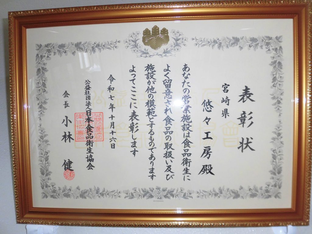 食品加工科での食品衛生管理の取り組みが認められ、令和7年度食品衛生全国大会において優良事業所として