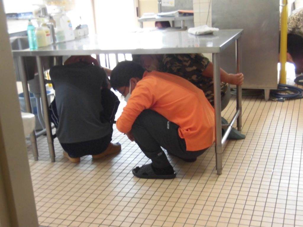 ~令和5年度の最後の防災活動~ 3月31日、地震を想定した避難訓練を行いました。各作業室では机や作業台の下に身を隠し、落下物等から 身を守る体制をとりました。 このところ毎日のように日本中どこかで地震発生のニュースが聞かれます。 近い将来、南海トラフ巨大地震により震度7程度の大地震と太平洋沿岸の広い地域に 10mを超える大津波の襲来が想定されています。 自分の身は自分で守る!皆さんが真剣に取り組まれ無事訓練を終了しました。 皆様のご協力に感謝。